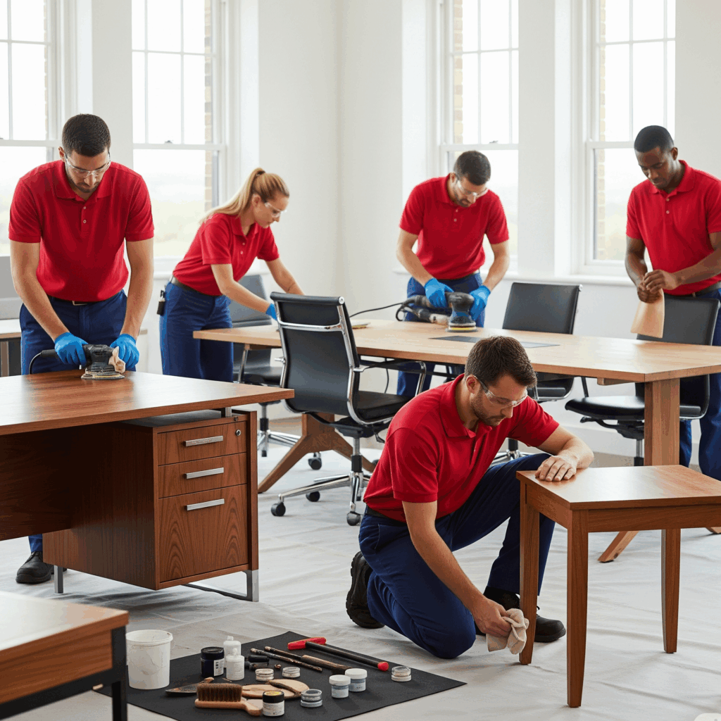 Daily use can cause wear and tear on workstations, desks, and tables. Our specialized restoration service removes scratches, stains, and surface imperfections while applying protective finishes that enhance wood grain and provide lasting protection. We help maintain a professional and inviting workspace that reflects your company’s commitment to quality.